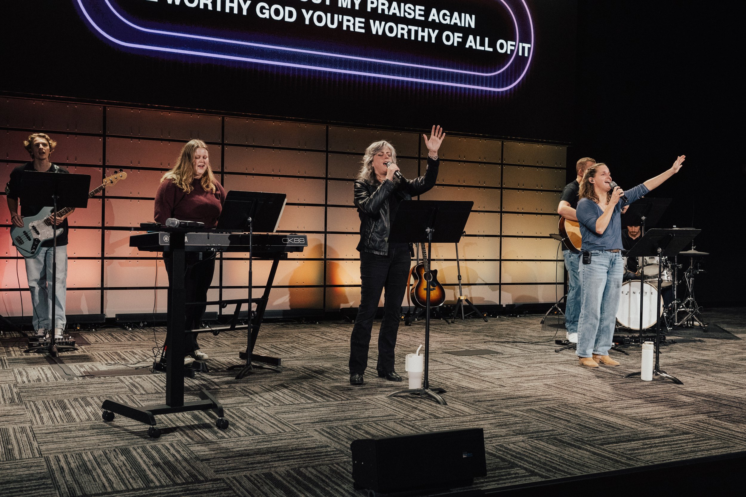 On Sundays, students arrive and sit with their parents through our opening worship set. The service host will dismiss students to meet their leader by the front door during our “Three Minute Break.”